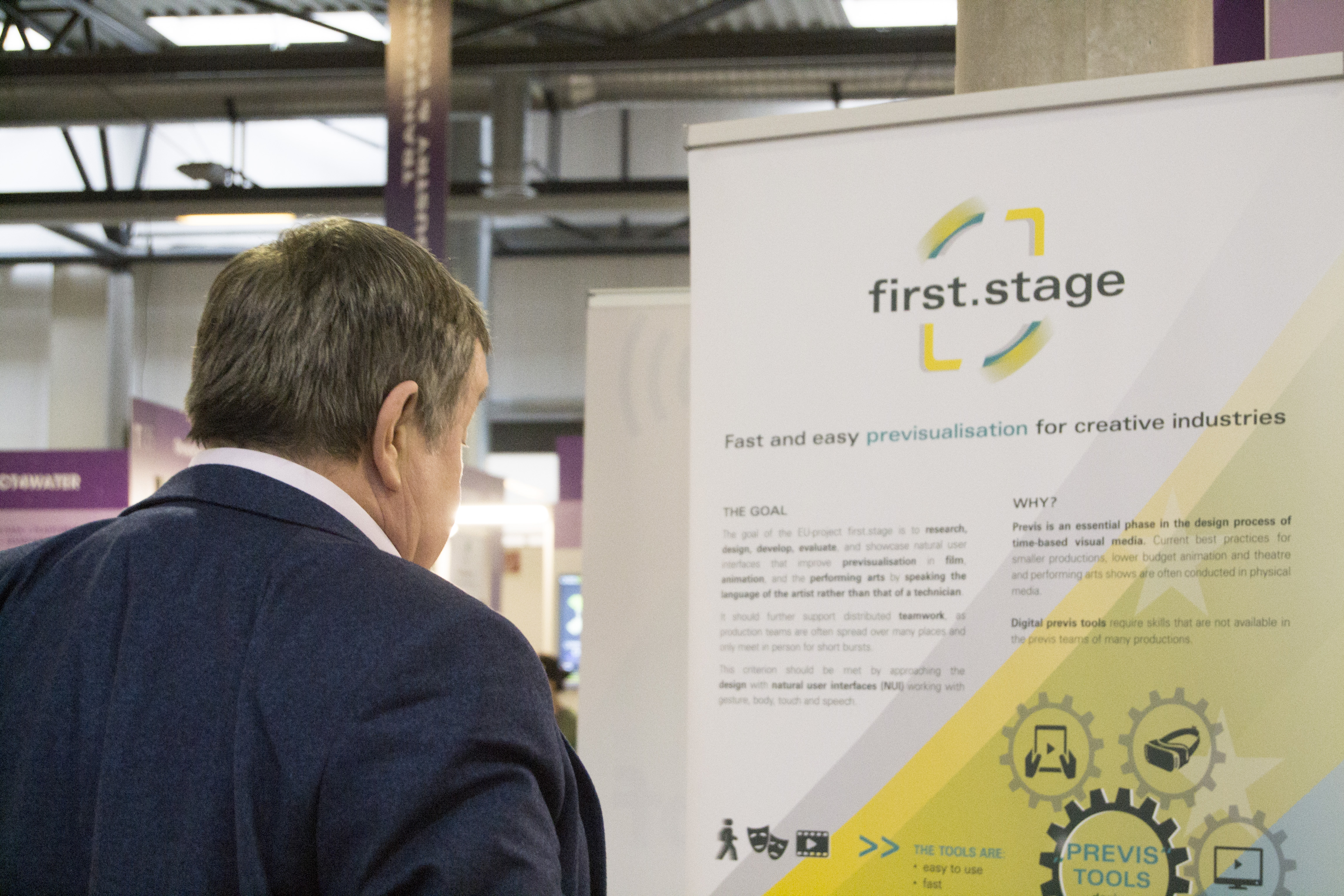 At this year's ICT: Imagine Digital - Connect Europe conference in Vienna, we were given the opportunity to present first.stage to the public. Within three days, we had the chance to exchange ideas and opinions with interested visitors at our booth. In addition to inspiring discussions, attendants could gather hands-on experience with the demonstrators and provided substantial feedback for the project team.